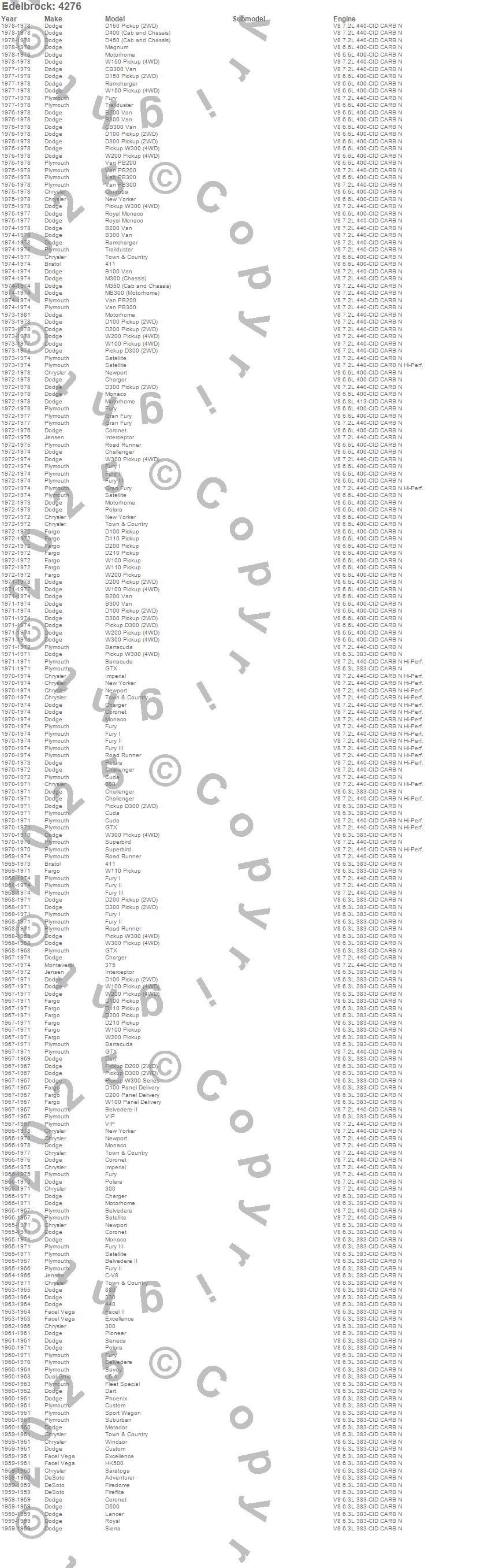 300, 330, 375, 411, 440, 880, Adventurer, B100 Van, B200 Van, B300 Van, Barracuda, Belvedere, Belvedere II, C-V8, CB300 Van, Challenger, Charger, Cordoba, Coronet, Cuda more…