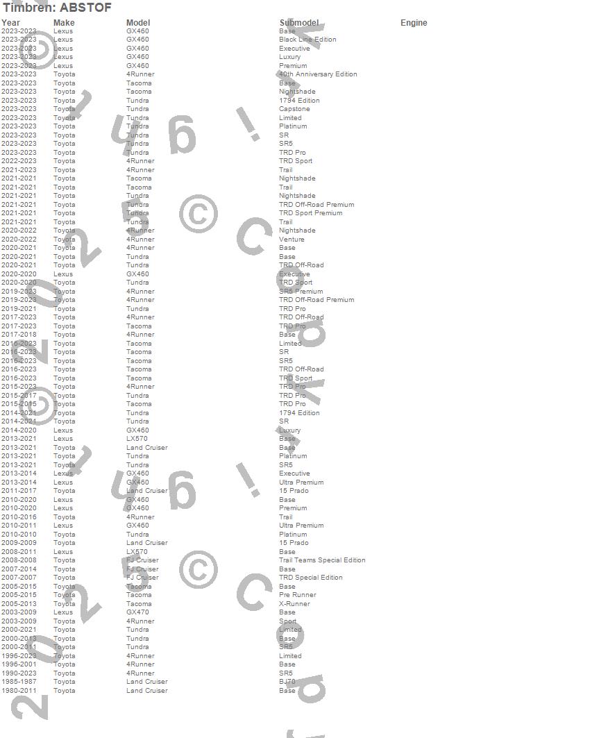Below is an abreviated list of applications for the Active Off Road Bumpstops.