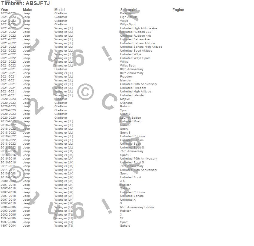 Below is an abreviated list of applications for the Active Off Road Bumpstops.