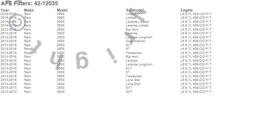 Below is an abreviated list of applications for the aFe Power DFS780 Series Diesel Fuel System.
