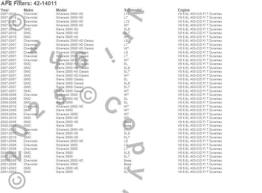 Below is an abreviated list of applications for the aFe Power DFS780 Series Diesel Fuel System.