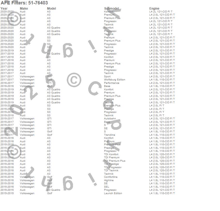 Below is an abreviated list of applications for the Momentum GT Pro DRY S Stage-2 Intake System.