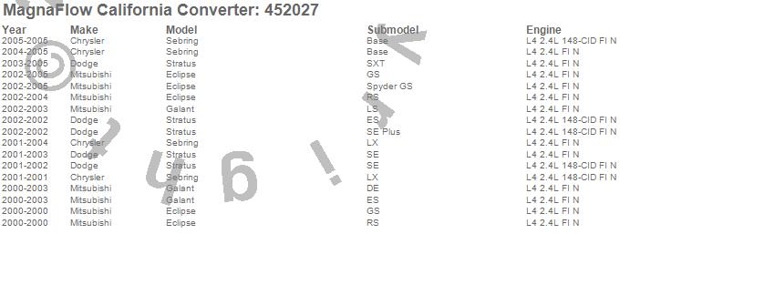 Below is an abreviated list of applications for the Direct Fit California Catalytic Converter.