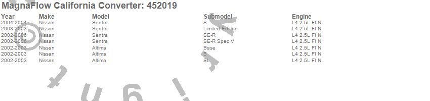 Below is an abreviated list of applications for the Direct Fit California Catalytic Converter.