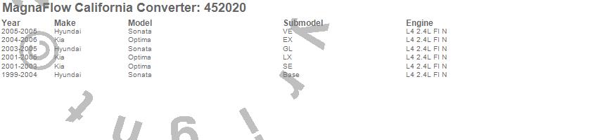 Below is an abreviated list of applications for the Direct Fit California Catalytic Converter.
