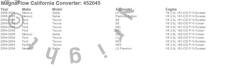 Below is an abreviated list of applications for the Direct Fit California Catalytic Converter.