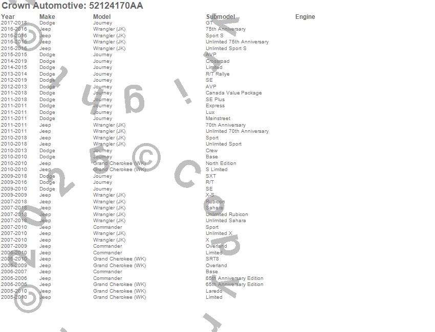 Commander, Grand Cherokee (WK), Journey, Wrangler (JK), Dodge, Jeep, 2016, 2015, 2014, 2013, 2012, 2011, 2010, 2009, 2008, 2007, 2006, 2005 more…