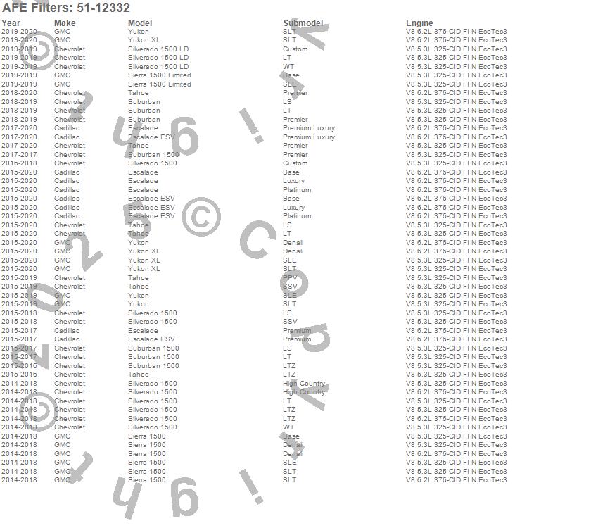 Below is an abreviated list of applications for the MagnumFORCE Pro Dry S Stage-2 Intake System.