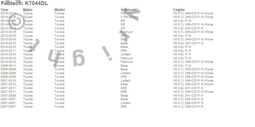 Below is an abreviated list of applications for the Control Arm Kit.