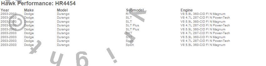 Below is an abreviated list of applications for the Sector 27 Rotor.