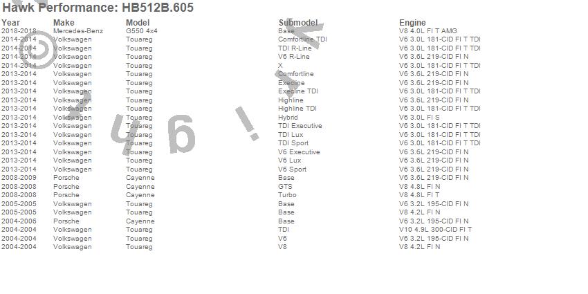 Hawk Performance Disc Brake Pad # HB512B.605 - High Performance Street 5.0 w/0.605 Thickness