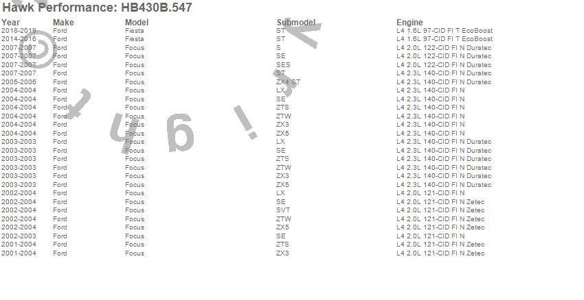 Below is an abreviated list of applications for the Disc Brake Pad.