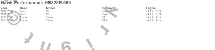 Hawk Performance Disc Brake Pad # HB328R.685 - Street Race w/0.685 Thickness