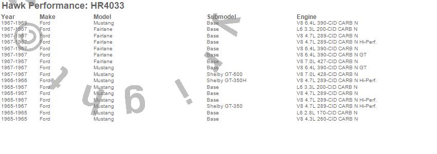 Below is an abreviated list of applications for the Sector 27 Rotor.