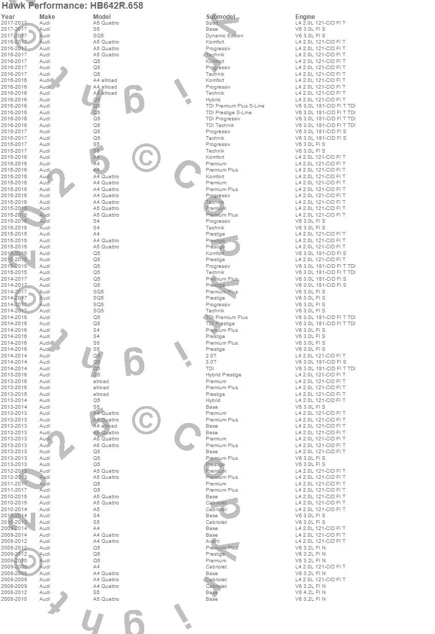 Below is an abreviated list of applications for the Disc Brake Pad.