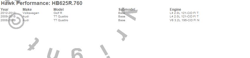 Hawk Performance Disc Brake Pad # HB625R.760 - Street Race w/0.760 Thickness - FMSI Plate #D1359