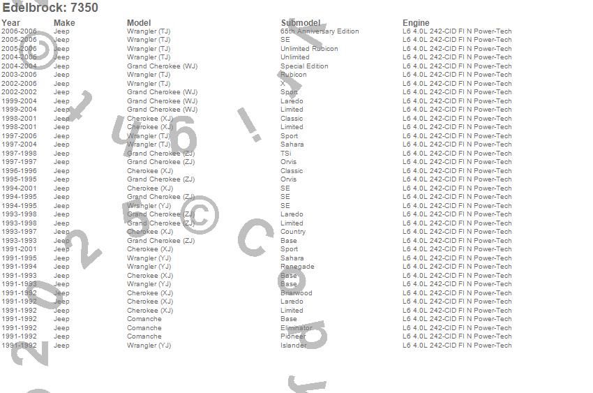Cherokee (XJ), Comanche, Grand Cherokee (WJ), Grand Cherokee (ZJ), Wrangler (LJ), Wrangler (TJ), Wrangler (YJ), Jeep, 2006, 2005, 2004, 2003, 2002, 2001, 2000, 1999, 1998, 1997, 1996, 1995 more…