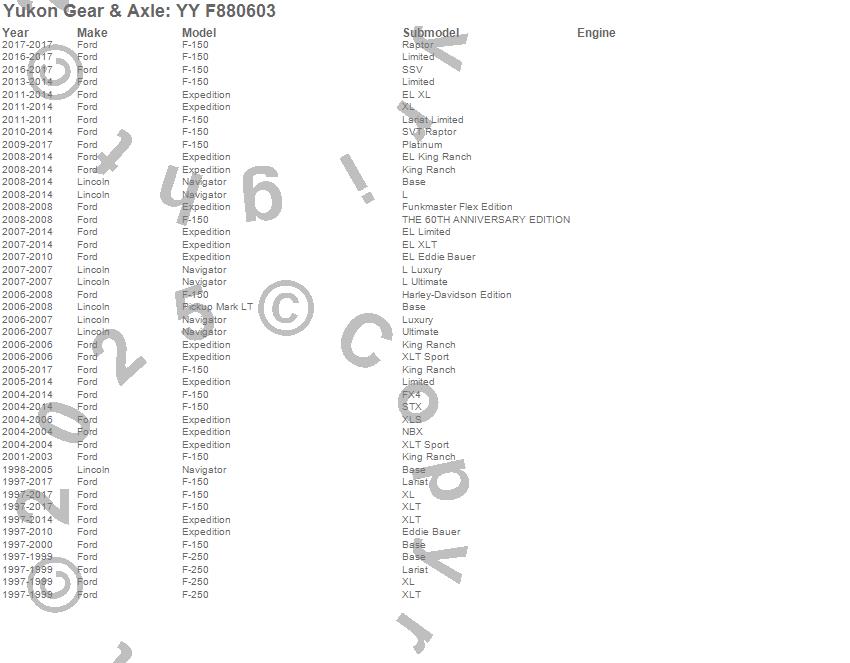 Below is an abreviated list of applications for the Pinion Flange.