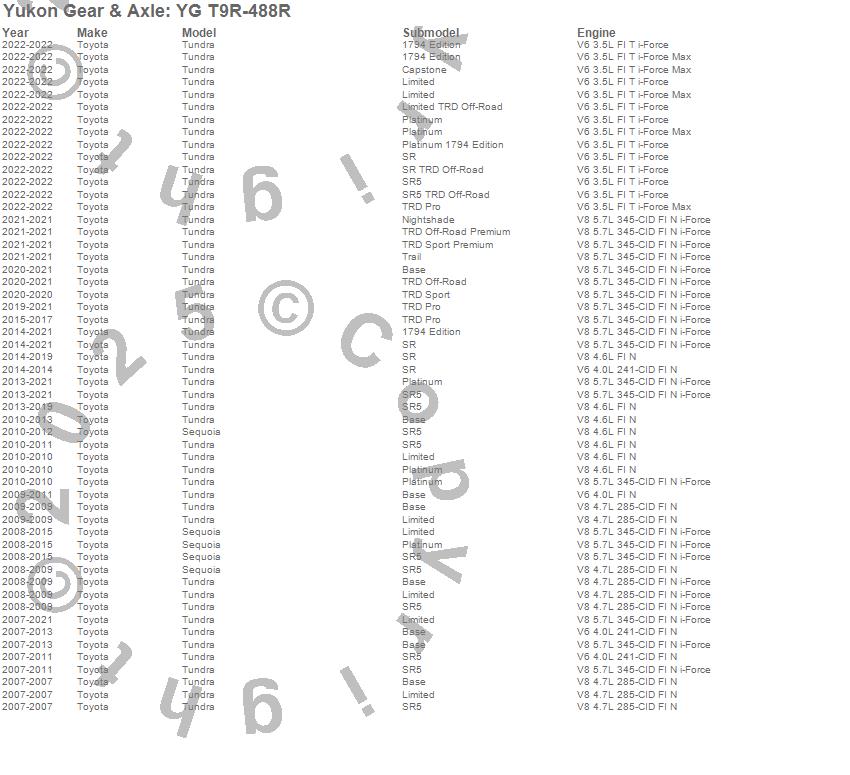 Below is an abreviated list of applications for the High Performance Ring And Pinion Set.