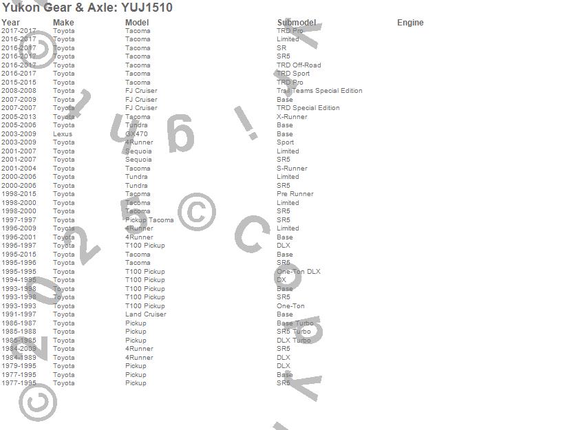 Yukon Gear & Axle U-Joint YUJ1510 Features: