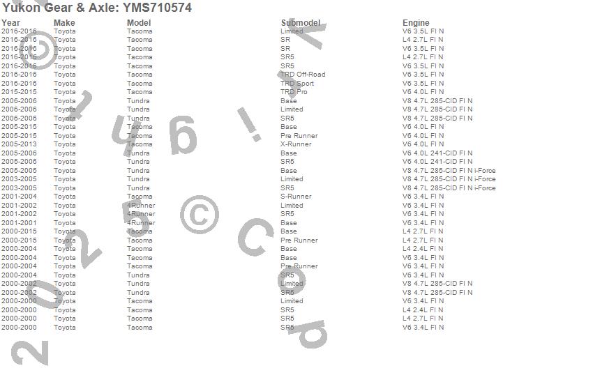 Below is an abreviated list of applications for the Yukon Mighty Axle Seal.