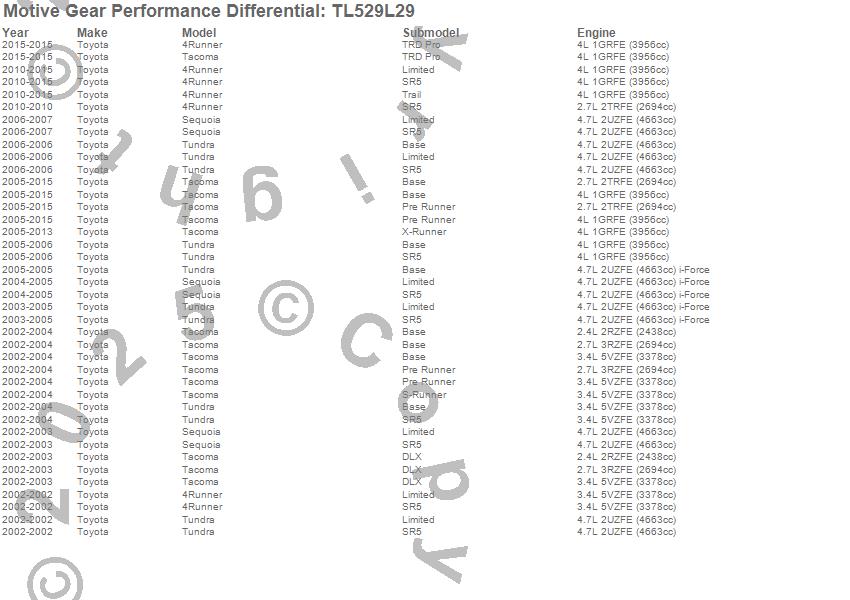 Motive Gear Performance Differential Ring And Pinion # TL529L29 - 5.29 Ratio - Toyota 7.5 in./8 in. - w/Factory Locker/E-Locker