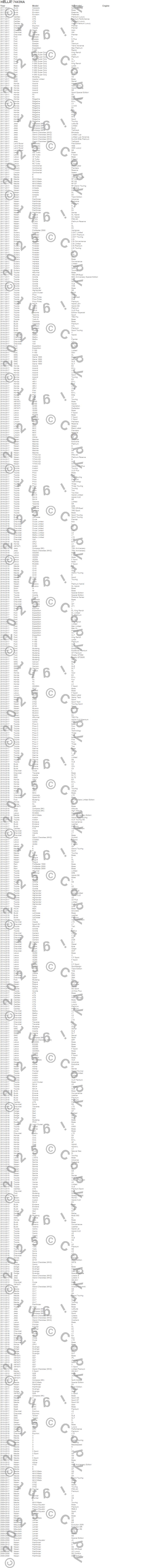 Below is an abreviated list of applications for the 7443 Bulb.