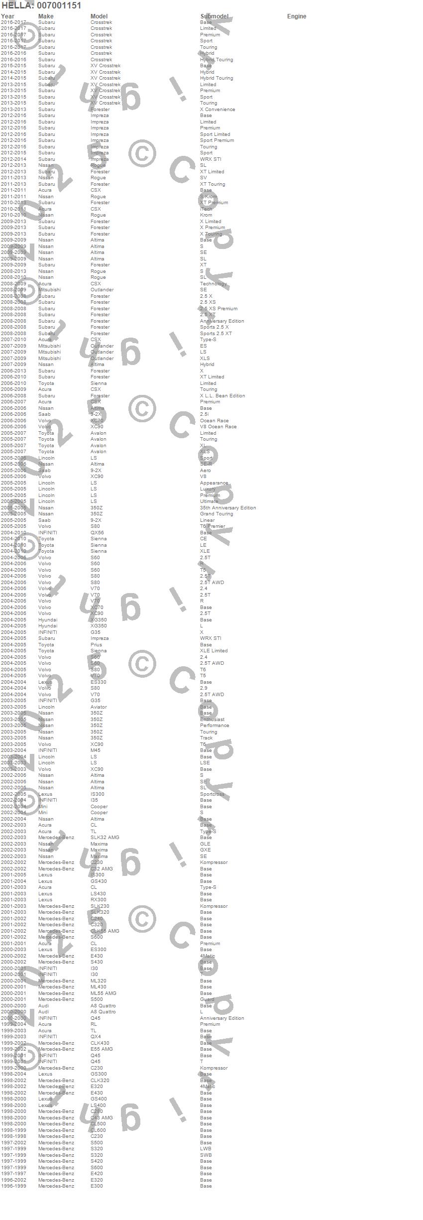 Below is an abreviated list of applications for the D2R High Intensity Discharge Capsule.