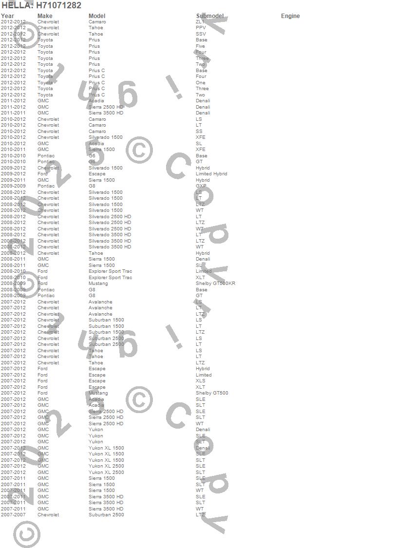 Below is an abreviated list of applications for the Optilux XB Series H16 9009 Xenon Halogen Bulb.
