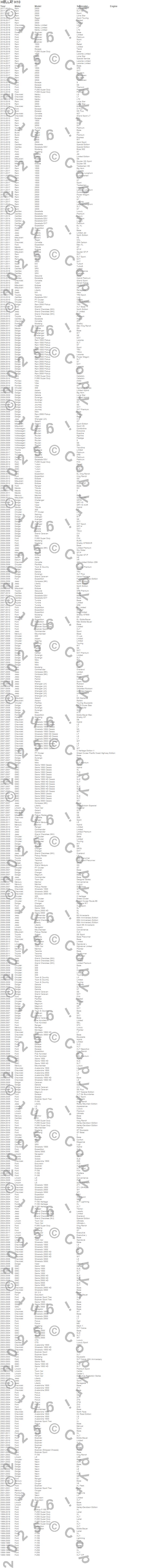 Below is an abreviated list of applications for the H10 9145 Halogen Bulb.