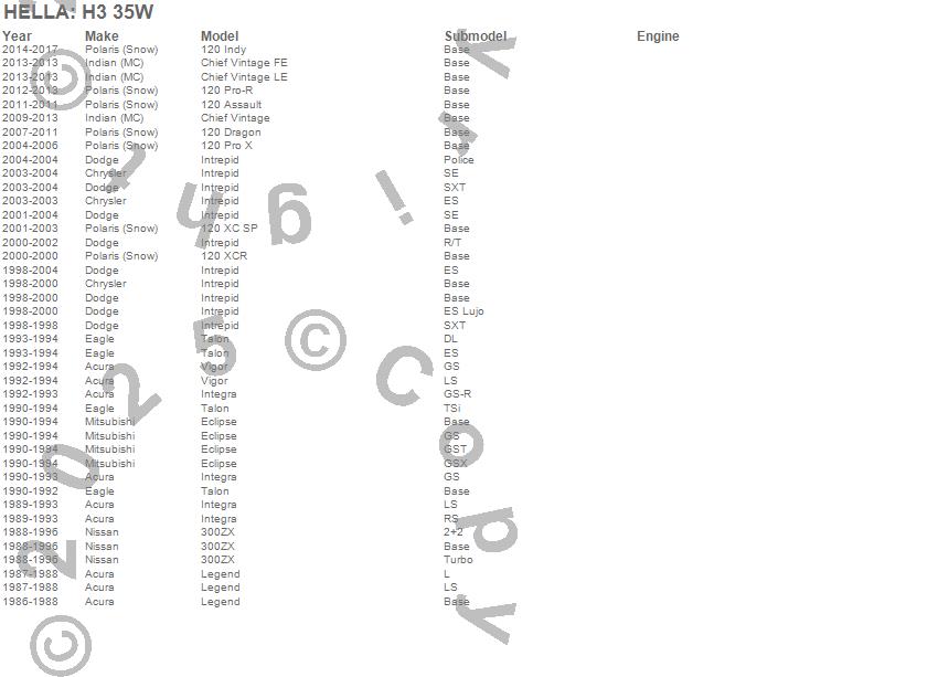 Below is an abreviated list of applications for the H3 Halogen Bulb.