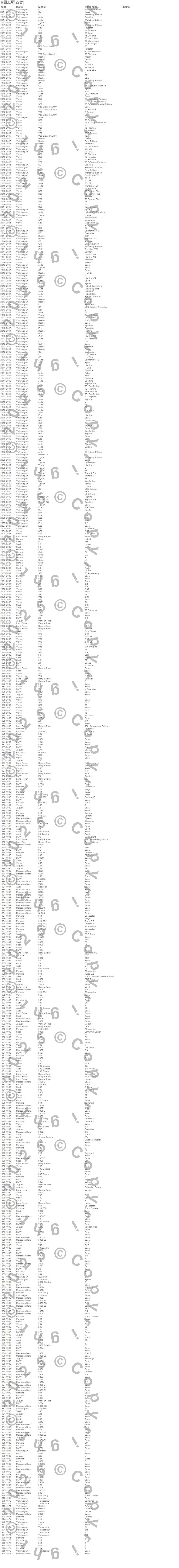 Below is an abreviated list of applications for the 2721 Bulb.
