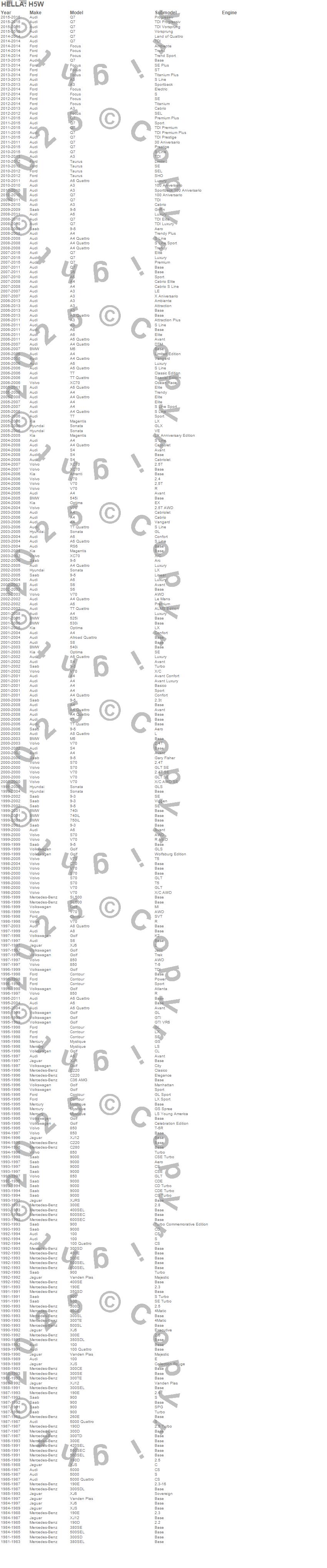 Below is an abreviated list of applications for the H5 Halogen Bulb.