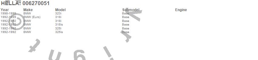 Hella Halogen Fog Lamp Assembly OE Replacement 006270051 Features: