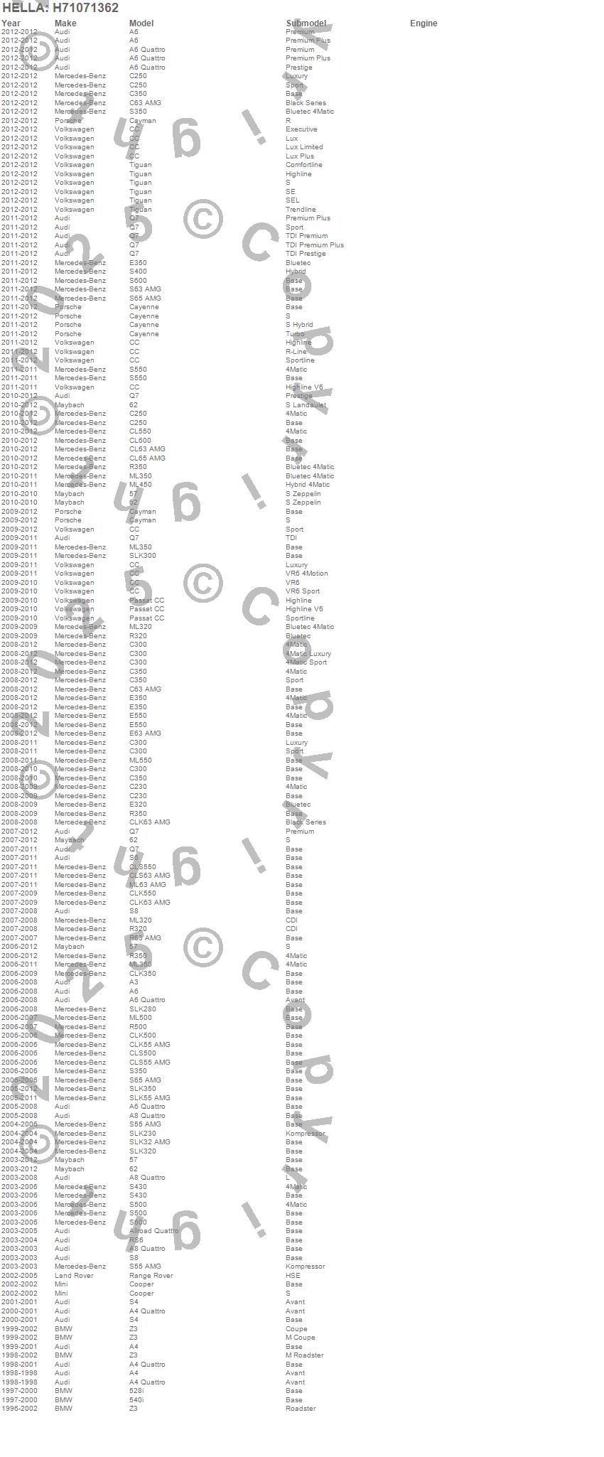 Below is an abreviated list of applications for the Optilux XB Series H7 Xenon Halogen Bulb.