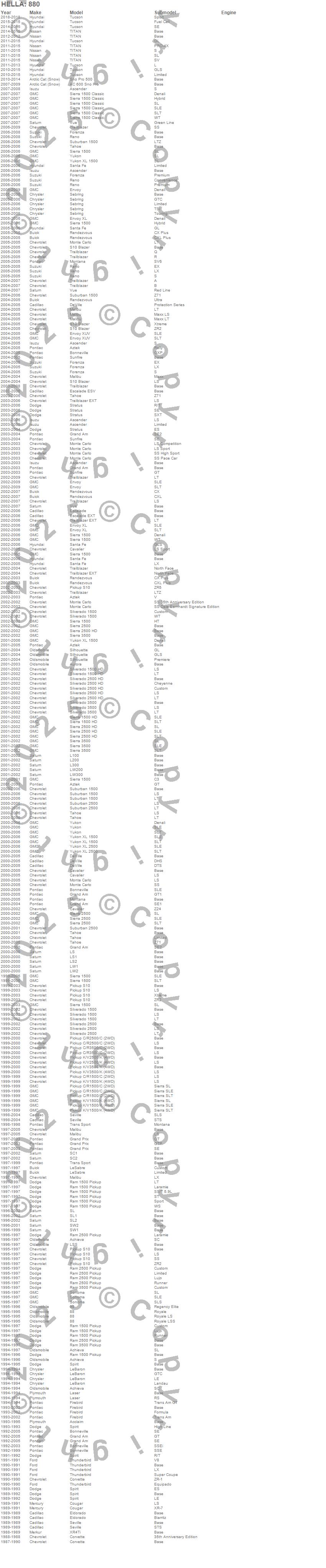 Below is an abreviated list of applications for the T3.25 Halogen Bulb.