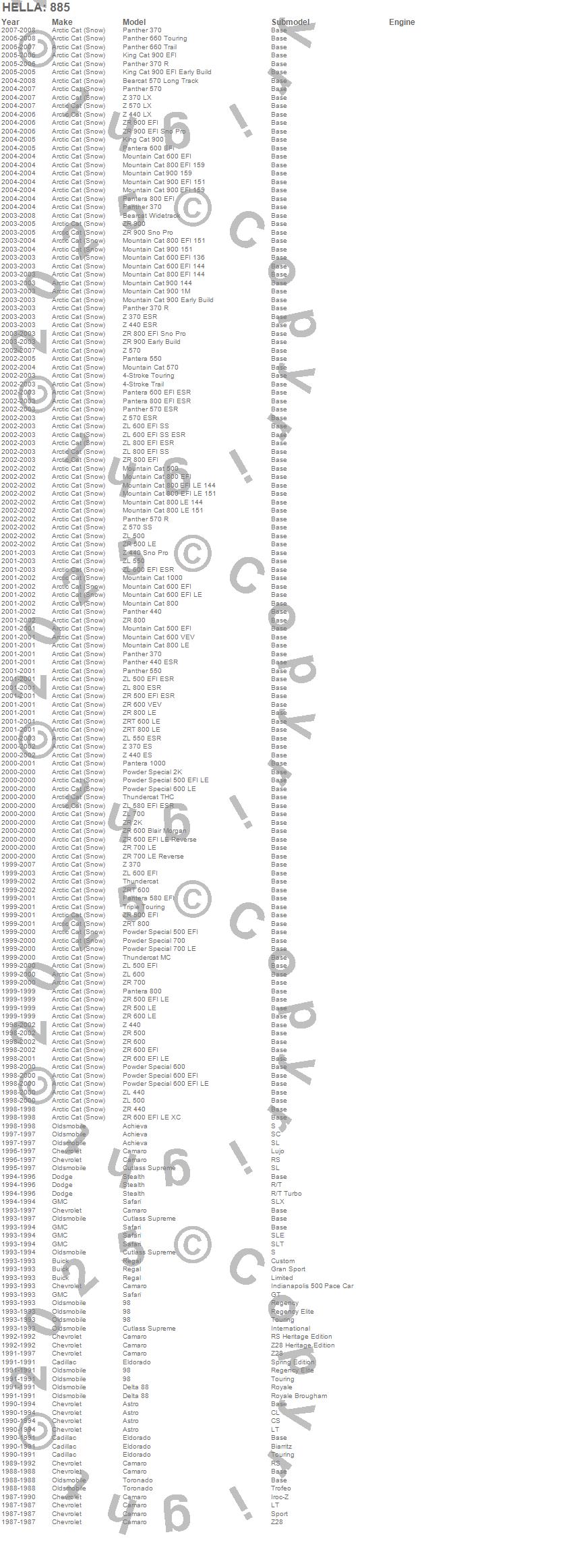 Below is an abreviated list of applications for the T3.25 Halogen Bulb.