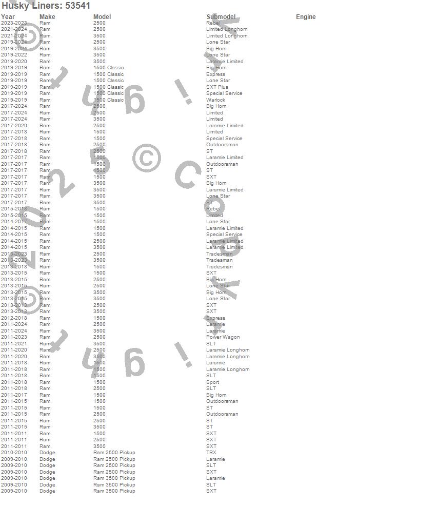 Below is an abreviated list of applications for the X-act Contour Center Hump Floor Liner.