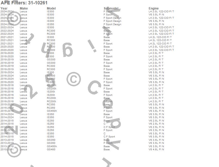 Below is an abreviated list of applications for the MagnumFLOW OE Replacement PRO DRY S Air Filter.