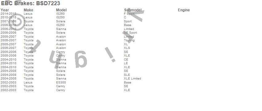 Below is an abreviated list of applications for the BSD Series Sport Rotor w/Ultra Quiet V Slot Configuration.