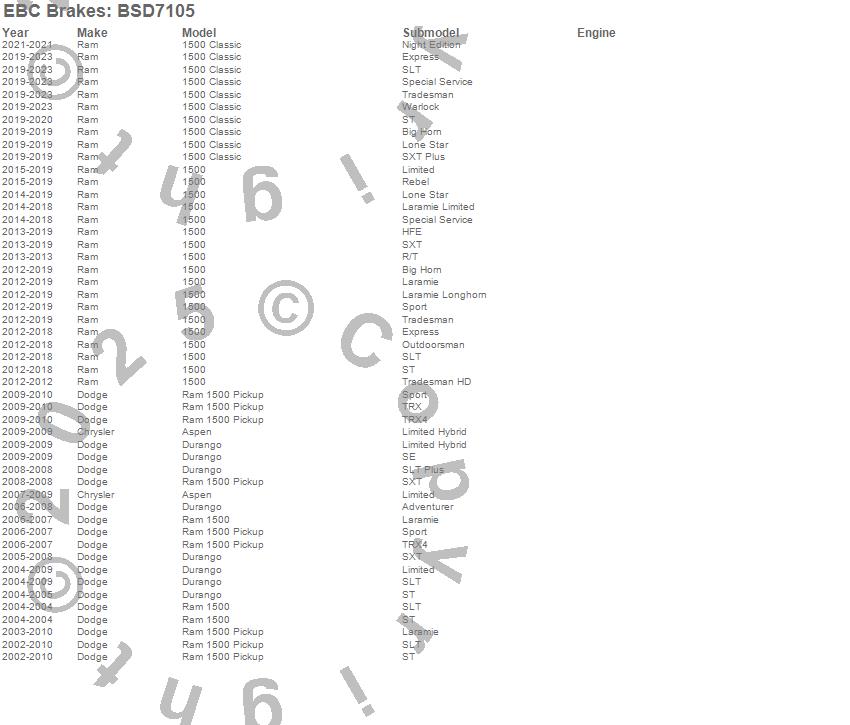 Below is an abreviated list of applications for the BSD Series Sport Rotor w/Ultra Quiet V Slot Configuration.