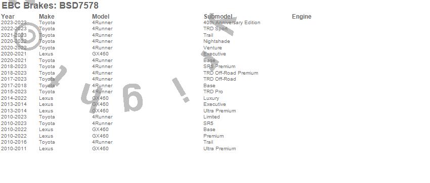 Below is an abreviated list of applications for the BSD Series Sport Rotor w/Ultra Quiet V Slot Configuration.
