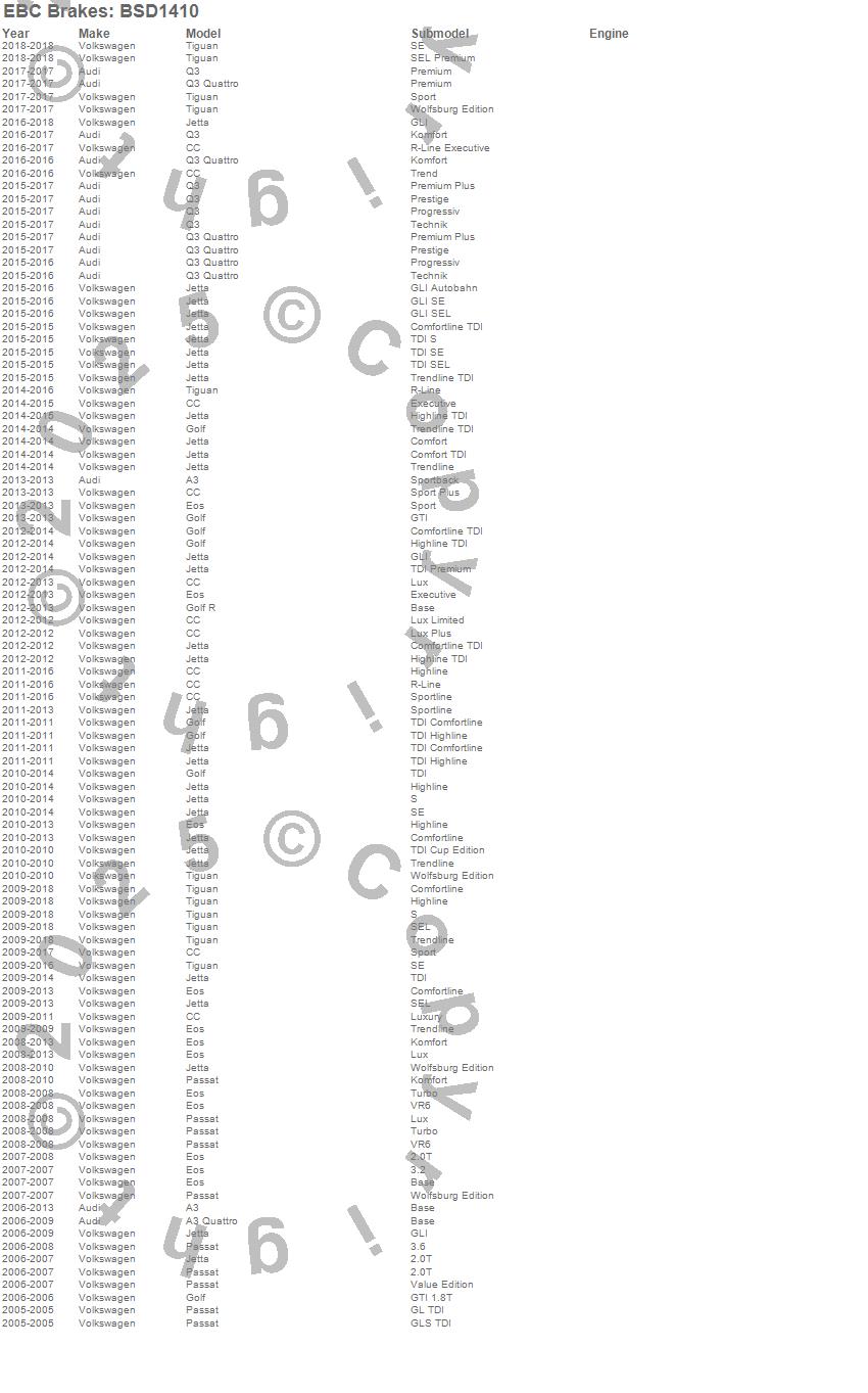 Below is an abreviated list of applications for the BSD Series Sport Rotor w/Ultra Quiet V Slot Configuration.