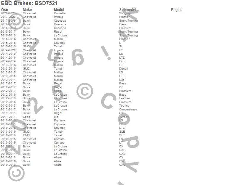 Below is an abreviated list of applications for the BSD Series Sport Rotor w/Ultra Quiet V Slot Configuration.