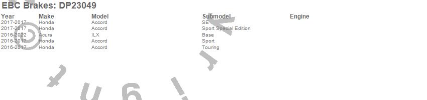 Below is an abreviated list of applications for the EBC Greenstuff 2000 Series Sport Brake Pads.