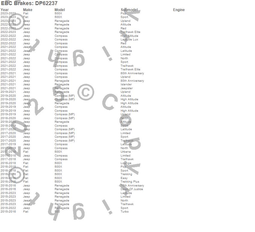 Below is an abreviated list of applications for the EBC 6000 Series Greenstuff Truck/SUV Brakes Disc Pads.