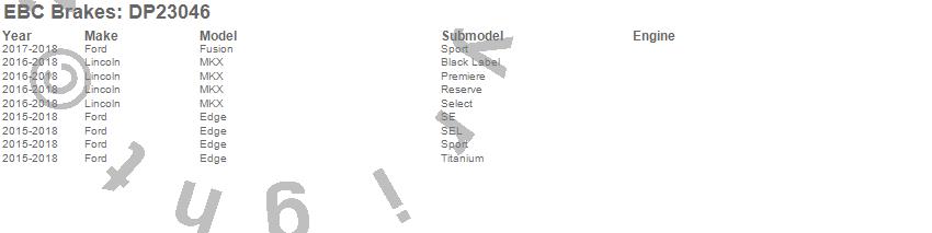 Below is an abreviated list of applications for the EBC Greenstuff 2000 Series Sport Brake Pads.