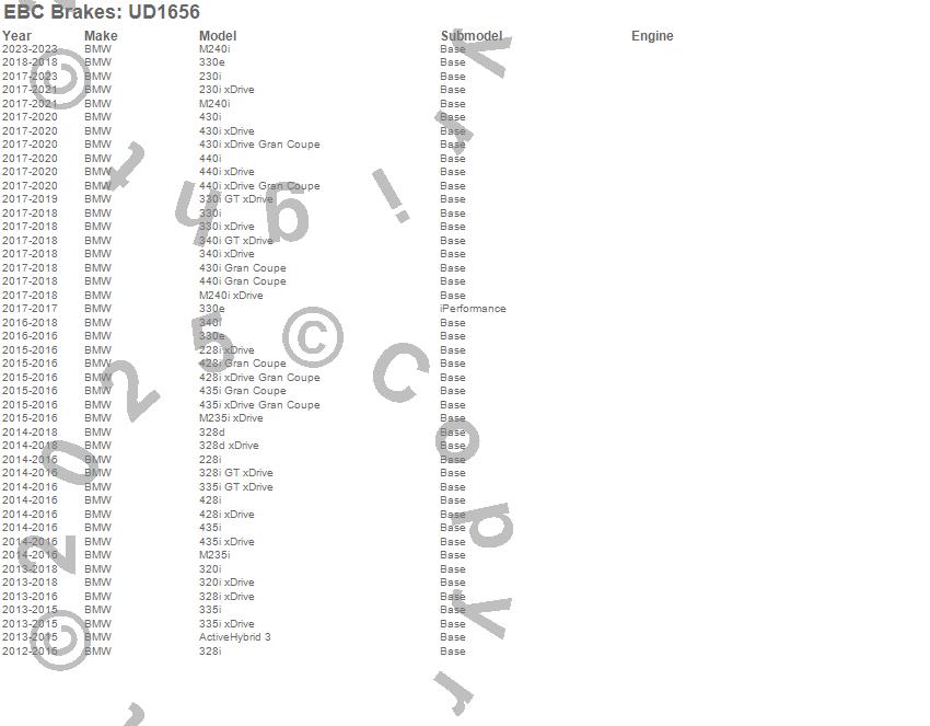 Below is an abreviated list of applications for the EBC Ultimax OEM Replacement Brake Pads.