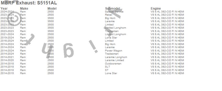 Below is an abreviated list of applications for the XP Series Cat Back Exhaust System.