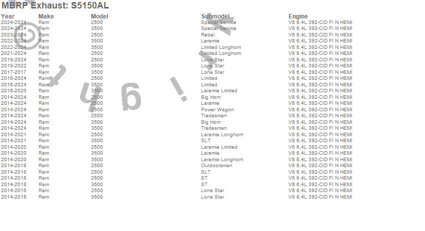 Below is an abreviated list of applications for the XP Series Cat Back Exhaust System.